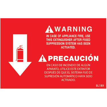 BL189 Self-Adhesive Vinyl Class K "Fire Extinguisher" Arrow Sign, 12" x 8"